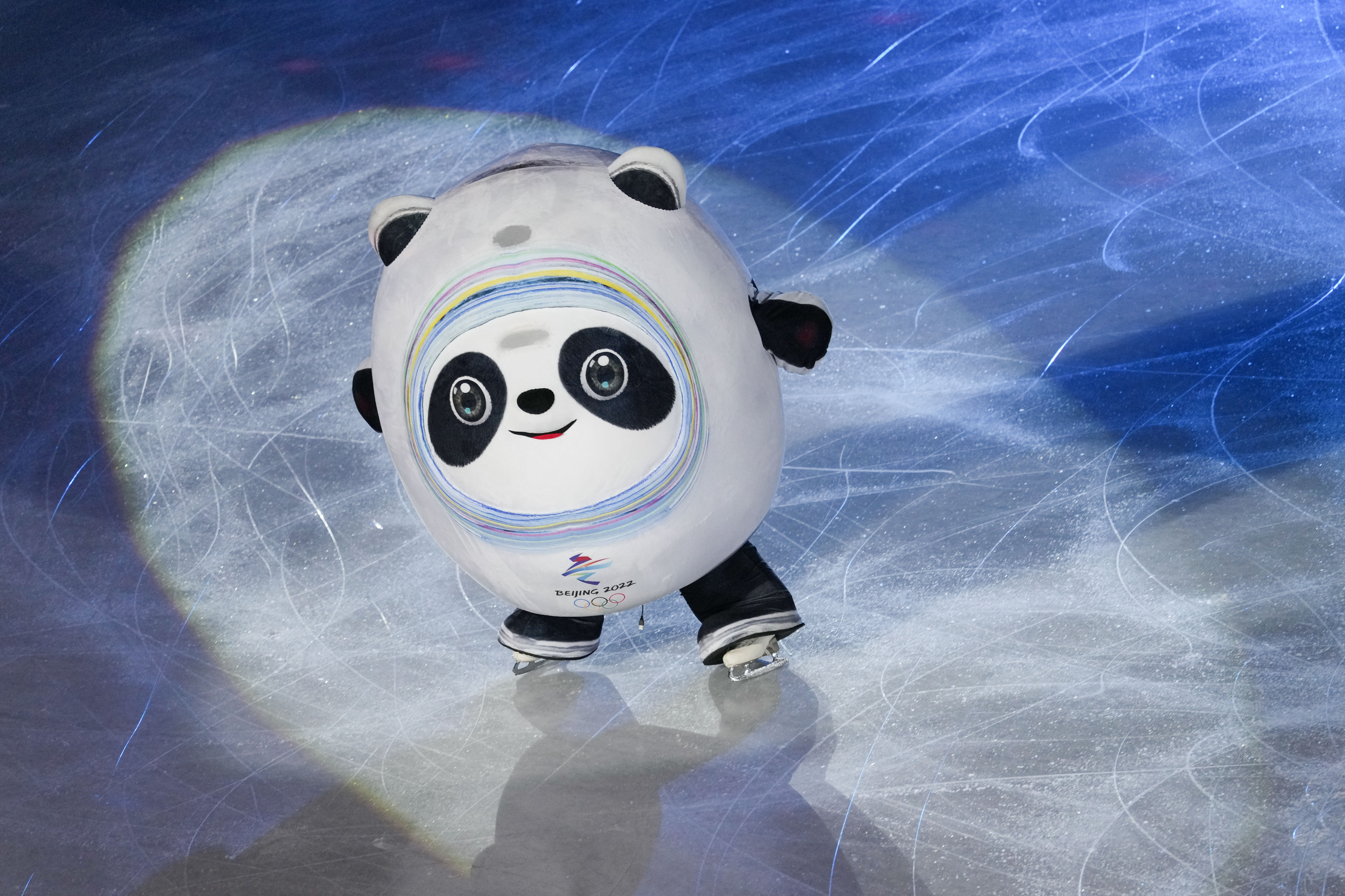2月20日,北京2022年冬奥会花样滑冰表演滑在首都体育馆举行。图为“冰墩墩”亮相。中新社