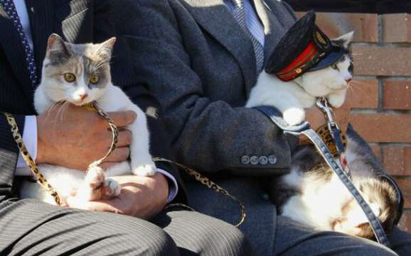 图为第三代猫站长“四玉”(右)和猫员工“六玉”。(图/共同社)