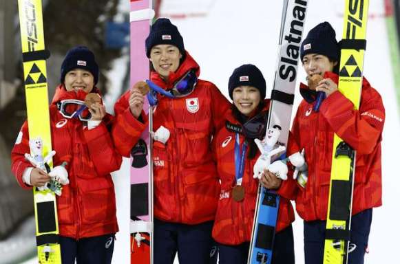 米兰-科尔蒂纳冬奥会当地时间10日迎来第5天,日本队在跳台滑雪混合团体项目中摘得铜牌。这是日本队继2014年索契冬奥会男子团体季军后,第4次登上跳台滑雪团体项目的领奖台。