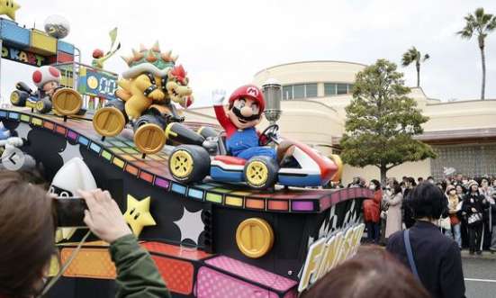 共同社报道,在3日率先展示的游行中,为庆祝25周年,任天堂的“马力欧”等乘坐花车在园内巡游,带动现场气氛。