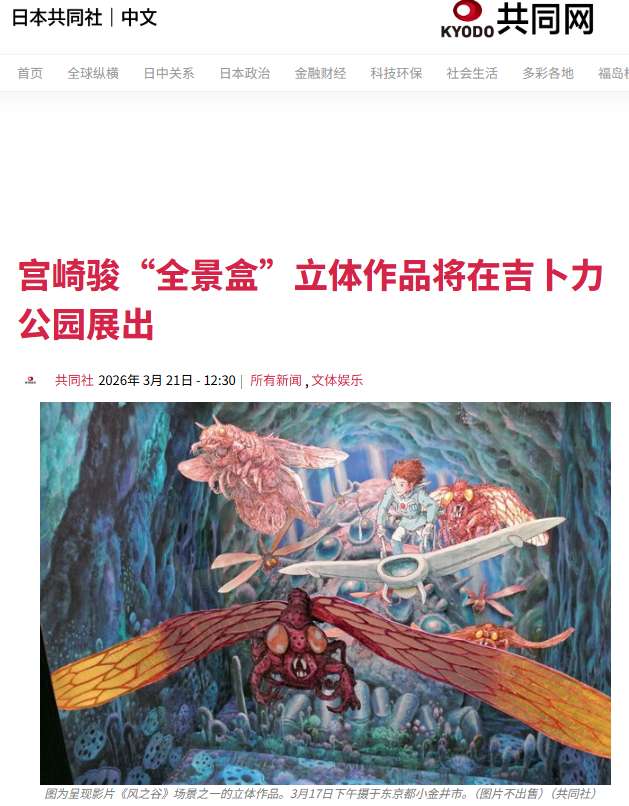 图为呈现影片《风之谷》场景之一的立体作品。(图/共同社报道截图)