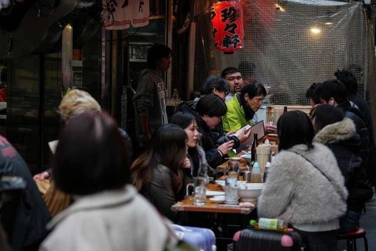 2月20日,在日本东京,顾客在一家餐厅用餐。(图/新华社)
