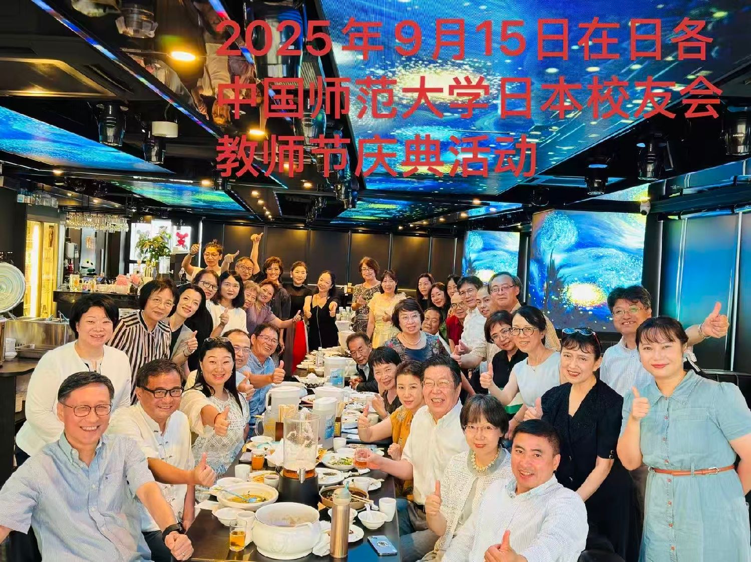 【本报特约记者/福山和泉 现场报道】2025年9月15日,由北京师范大学日本校友会主办,邀请在日中国师范大学系统校友们举办了一场别开生面的教师节庆典活动。这次活动有近50人参加,包括北京师范大学、天津师范大学、上海师范大学、福建师范大学、东北师范大学、华东师范大学、湖南师范大学、辽宁师范大学、哈尔滨师范大学、华南师范大学及上海大学、广州中医大学的校友和日本汉语教师协会的老师们。大家欢聚一堂,共同庆贺第41个教师节。北京师范大学日本校友会郑峻岩老师担任会议主持人。