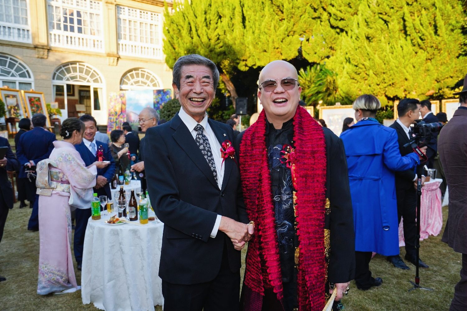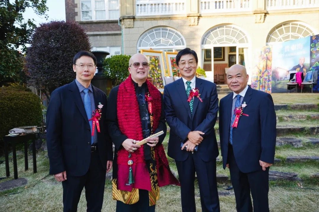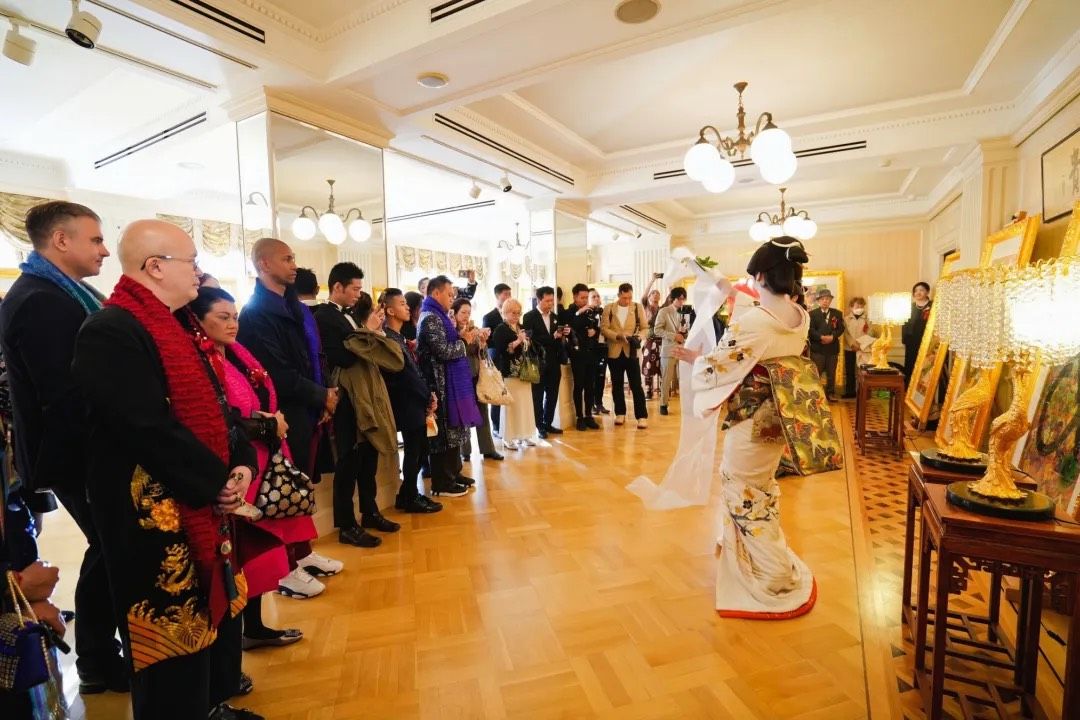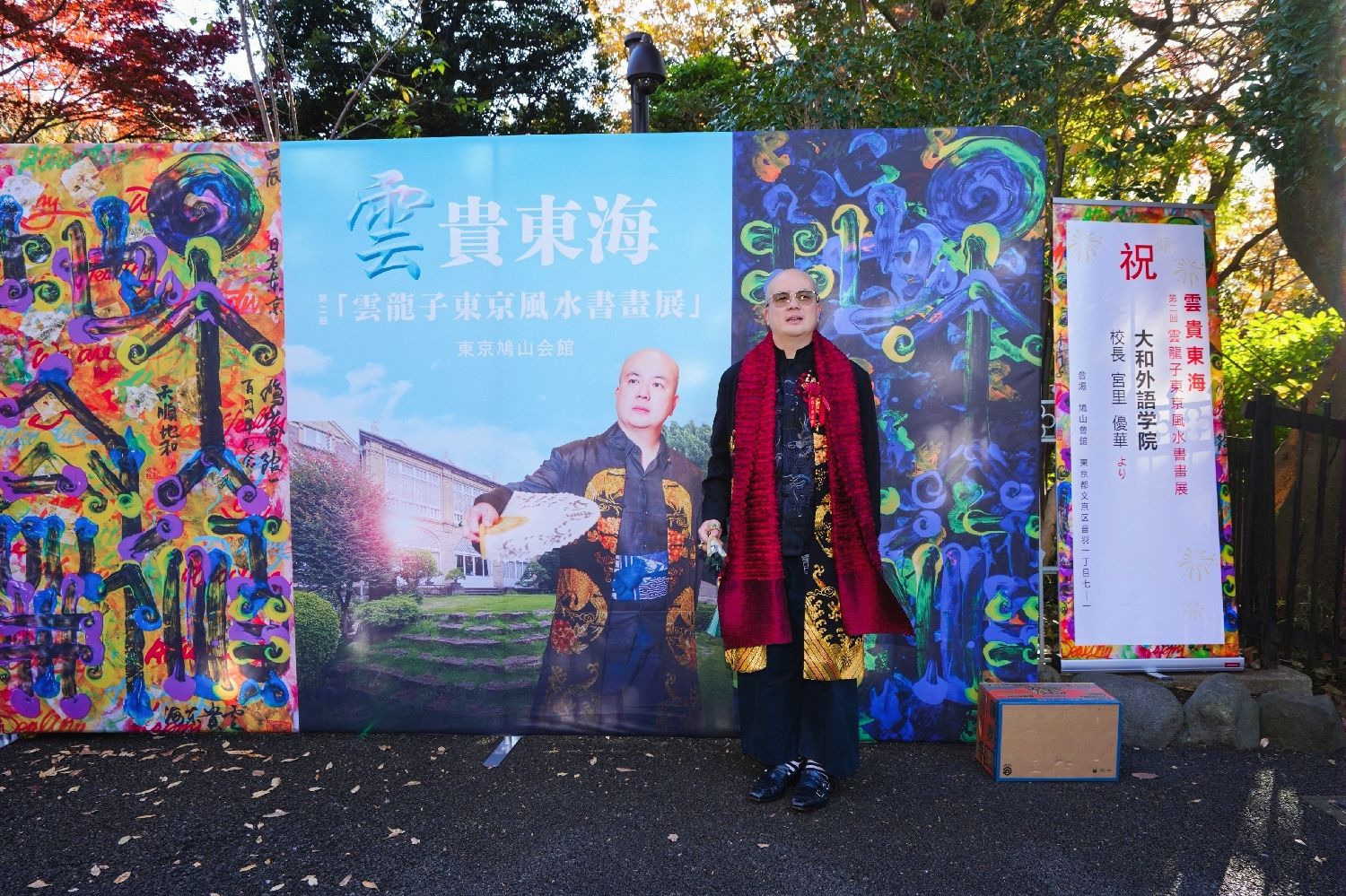 云龙子大师在开幕式上发表了以“和”为主题的致辞。他表示非常荣幸能够在鸠山会馆举办此次展览,并赞赏这座历史悠久的会馆风水卓越,象征着财富与贵气。云龙子大师强调,“和”是中日文化的核心理念,既展现了深厚的哲学智慧,又深入人们的日常生活。他围绕“和”创作了40幅作品,运用丰富的色彩和独特风格,将汉字、咒语及图案融合,传达了人与自然、人与人之间和谐相处的美好愿景。此次展览汇聚了来自中国、日本、新加坡、柬埔寨等地的贵宾,包括柬埔寨王子与公主、国际时尚设计师和名模等,共同分享并颂扬“和”的力量。云龙子大师相信,拥抱“和”的理念将带来和平、繁荣和幸福。