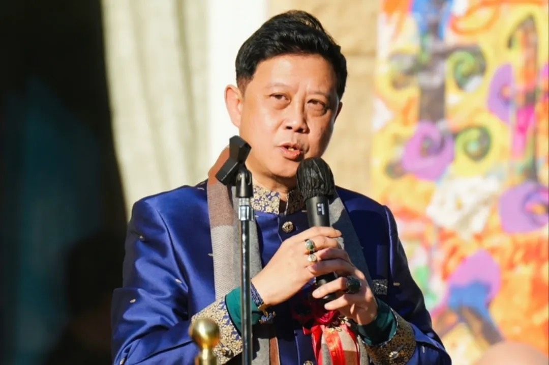 柬埔寨王子在致辞中表达了对云龙子大师的深厚敬意,并回顾了与云大师的首次相识。他提到,已故母亲布拜德威公主深深爱着云大师,视其为家人之一。王子赞扬云大师不仅才智过人,而且充满爱心,这一切都体现在他的艺术作品、生活方式以及与人的关系中。王子表示,云大师的艺术和人格给他留下了深刻的印象,并强调云大师的作品体现了深厚的文化底蕴和人文关怀。