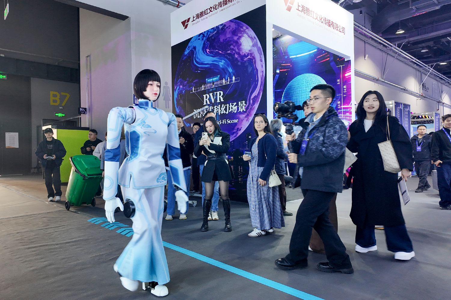 图为2026北京国际科幻与未来产业博览会上随处可见的科技元素吸引观众驻足拍摄。(图/东方新报网)