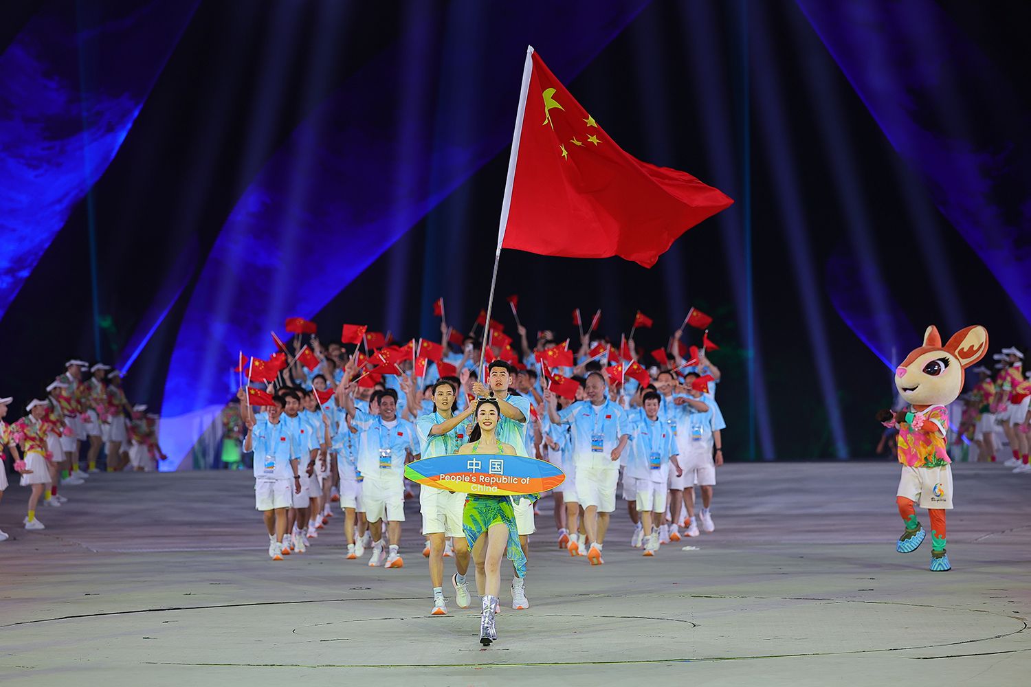 22日20时,第六届亚洲沙滩运动会开幕式在三亚亚沙公园开始,伴随着动感旋律,来自亚奥理事会全部45个成员国家和地区的体育代表团相继入场。