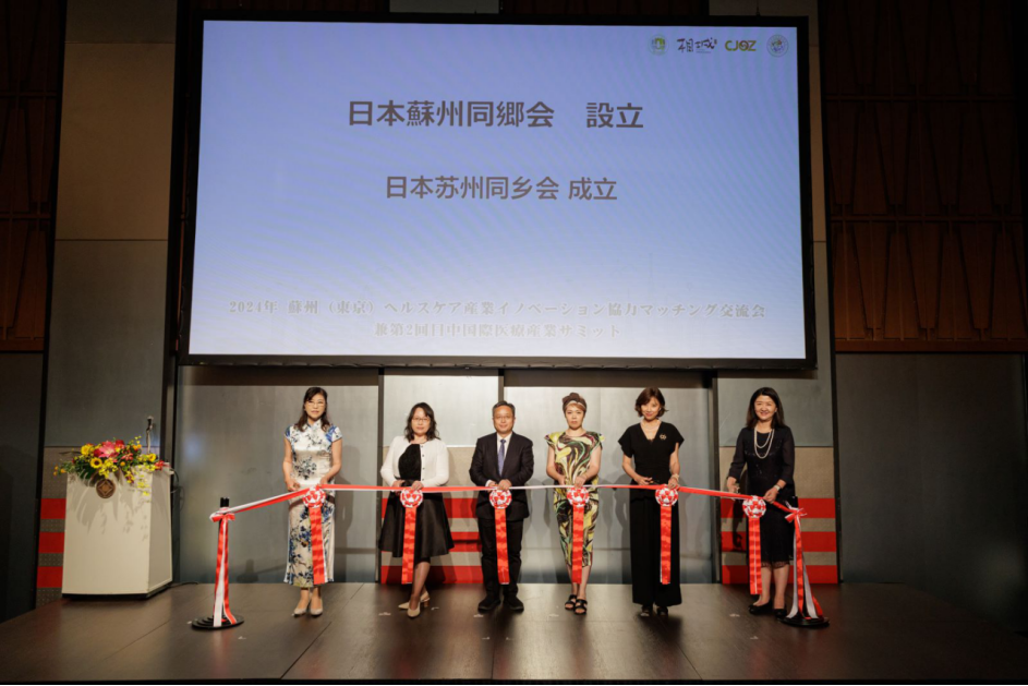 6月18日,在东京新大谷酒店举行的“2024苏州(东京)大健康产业创新合作对接会 暨第二届中日医疗产业大会”上,日本苏州同乡会隆重成立。日本苏州同乡会是苏州搭建日中桥梁的新成员;成立大会迎来苏州市人民政府顾海东副市长和5位苏州同乡会的成员(会长、4位常务副会长)的共同剪彩。