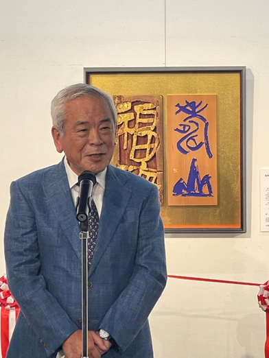 竹市求仙先生表示:这次能够和何柏青老师一起在银座举办联展,感到非常荣幸。也由衷感谢各位不远万里从中国来到日本的嘉宾们。正因为有大家的到来和支持帮助,我们两个人才能在这里成功举办这次展出。
