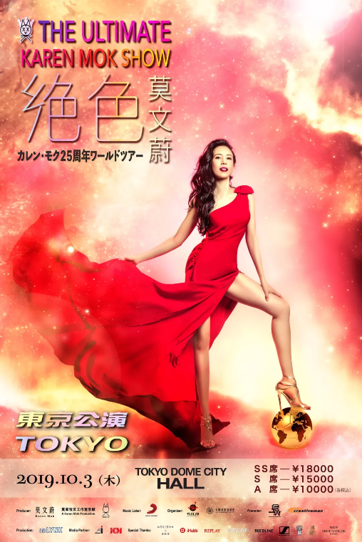 绝色莫文蔚世界巡回演唱会2019春季继续起航, 东京站定档10月3日,Tokyo Dome City Hall。新的巡演也将给观众带来一个“升级版”的莫文蔚,必定精彩绝伦,令人期待!
