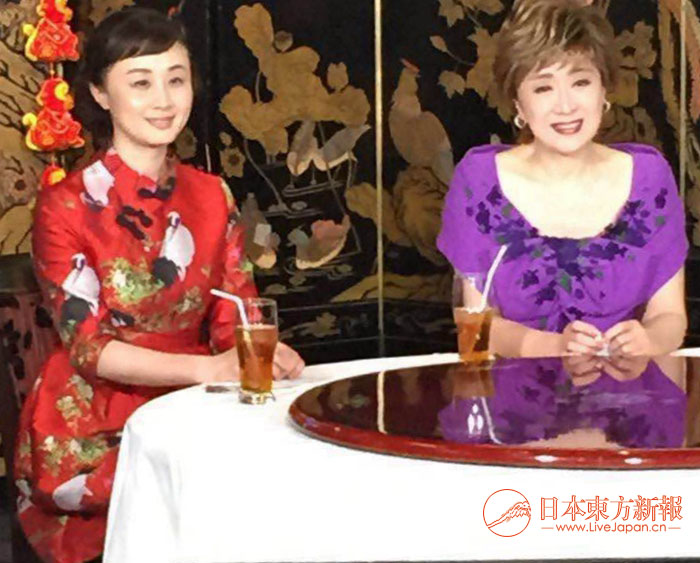 耿忠(左)与日本著名歌手、特邀嘉宾小林幸子在直播室。