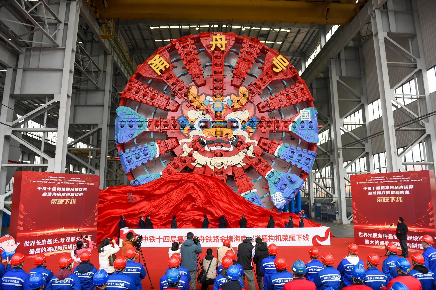 全長135メートル、掘削直径14.57メートル、総重量4350トンの巨大トンネル・ボーリング・マシン(TBM)の「甬舟号(Yongzhou)」が26日、中国・湖南省(Hunan)長沙市(Changsha)でラインオフした。世界最長の海底高速鉄道トンネル、甬舟鉄路金塘海底トンネル建設に投入される。