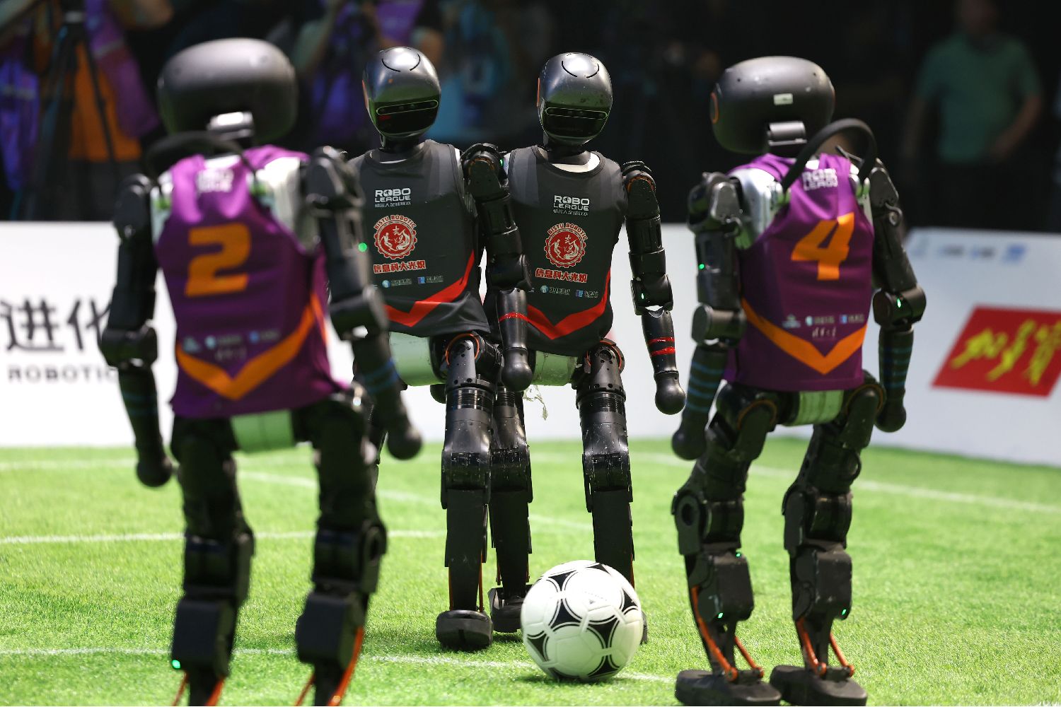 北京スマートeスポーツ競技センターのピッチ上を、色とりどりのユニフォームを着たヒューマノイドロボットたちが走り回り、ドリブルし、「突破」し、シュートを放つ――。国内初のロボットによる3対3のサッカーAI大会「2025RoBoLeagueロボットサッカーリーグ」の決勝戦が6月28日の夜に開幕した。