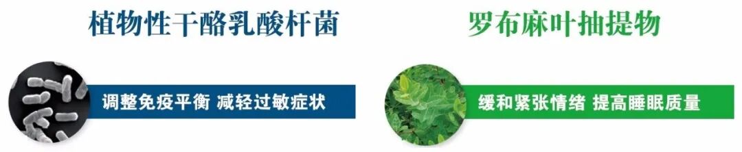 植物性干酪乳酸杆菌+罗布麻叶抽提物,一个侧重调节免疫平衡,一个侧重改善睡眠。