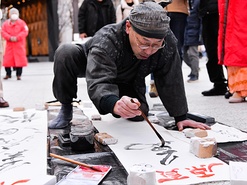 日本书法家东京街头挥毫为武汉祈福