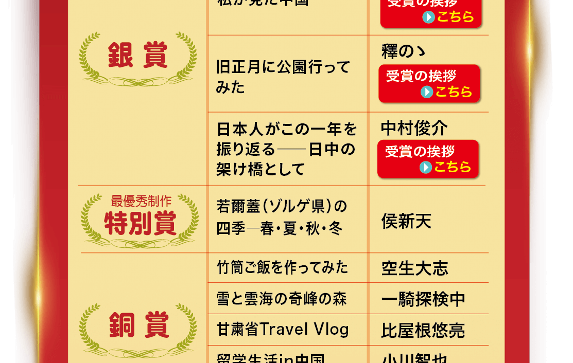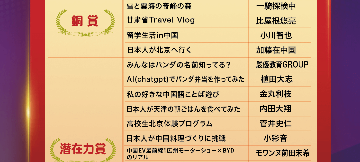4. 「私が見た中国」アニメ、旅行Vlog、ストーリー仕立ての作品など、自由な発想で制作した動画。